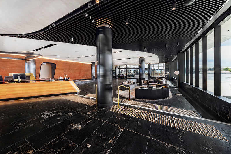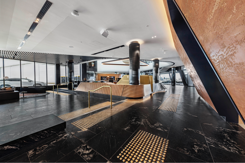 The unique Australian palette of materials, textures, and colours evokes a sense of place and culture, setting it apart from other airport lounges worldwide. Our exclusive products, such as Entry Matting, Stair Nosing, and TGSI’s, enhance the ambiance and character of the dynamic space while ensuring compliance with equal access provisions.